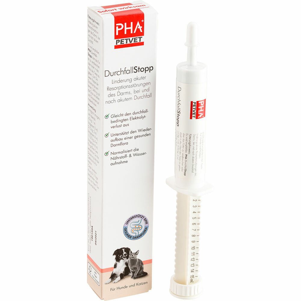 PHA DurchfallStopp kann über das Futter oder direkt in das Maul des Tieres gegeben werden. Die Anwendung erfolgt zweimal täglich zwischen 2 ml und 8 ml. Die orale Verabreichung sollte für ca. 3 Tage beibehalten werden.